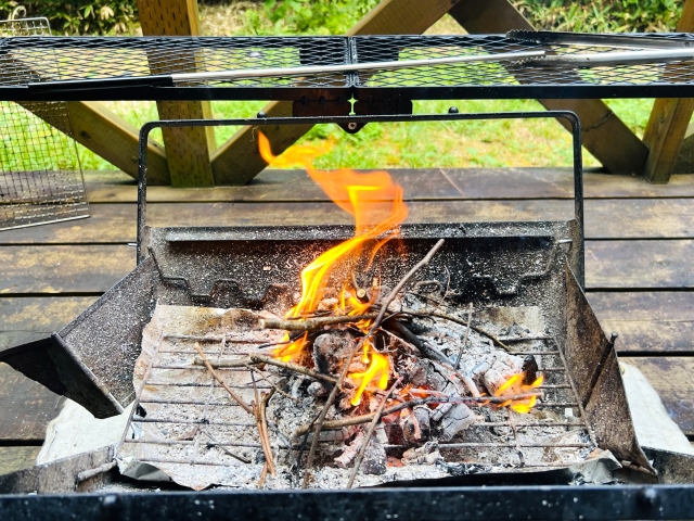 焚き火の火花や燃えさしは予想以上に長く飛ぶことがあり、椅子の素材が合成繊維などの場合、数秒で溶けたり穴が開いたりします。火花が飛んでくる角度や椅子の向きによっては顔や手に触れることもあるため、素材選びと距離確保が鍵です。